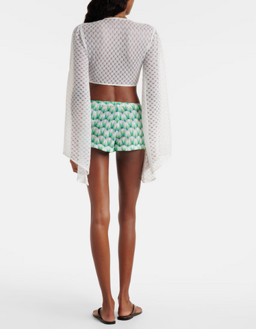 Shorts in viscose with green and blue floral pattern