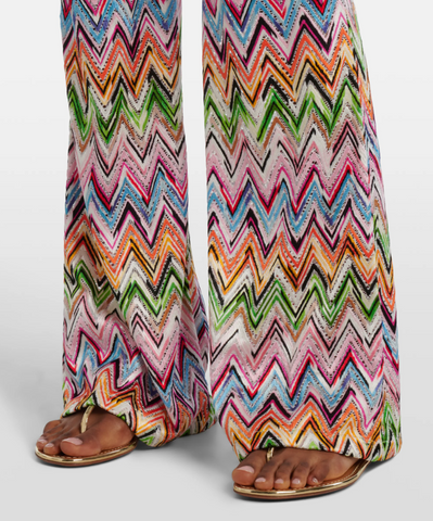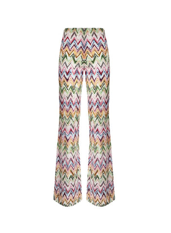 Flared pants with lace pattern and zigzag motif